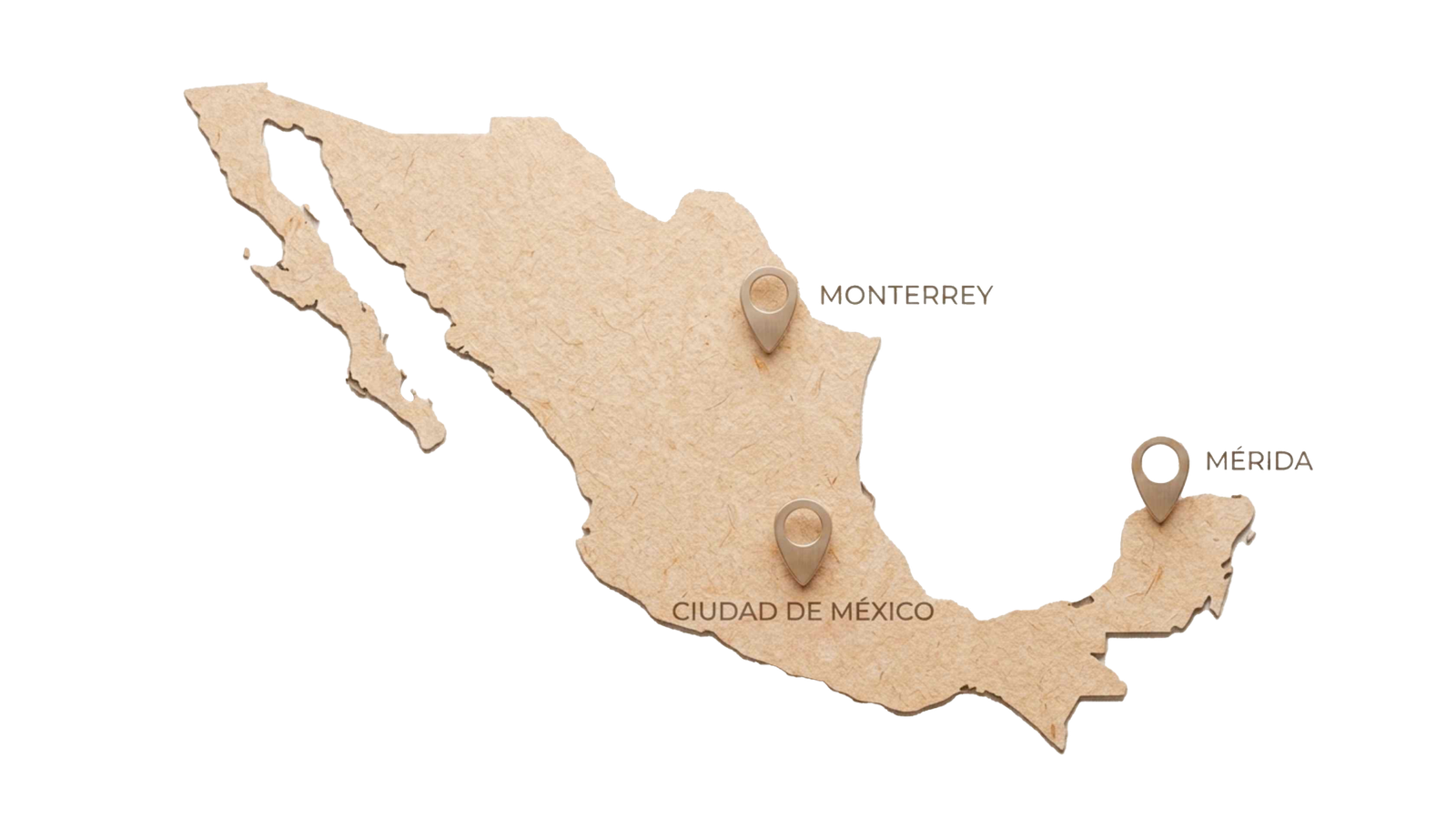 Nuestra operación se extiende desde Mérida a Ciudad de México y Monterrey, articulando una visión estratégica del mercado inmobiliario en México. Presencia que respalda cada inversión.
